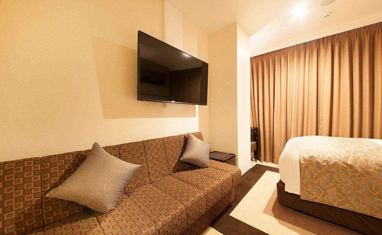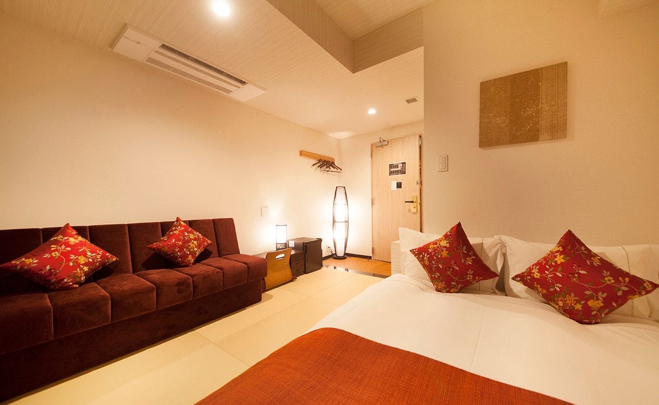 15平米 / クイーンベッド(160cm) ソファーベッド(90cm) / Wi-Fi無料接続 / ※大浴場は本館にあります