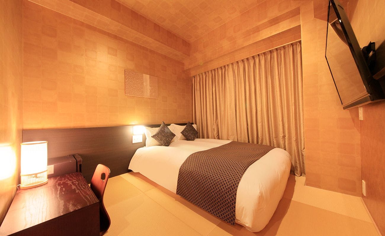 約12平米 / ダブルベッド(140cm) / Wi-Fi無料接続 / 2名利用可 / ※大浴場は本館にあります