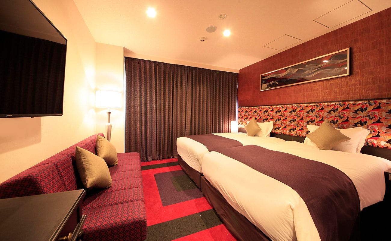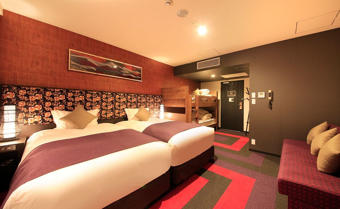 約19平米 / セミダブルベッド(120cm)×2 ソファーベッド(90cm) / Wi-Fi無料接続