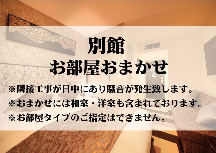 ※隣接の建物工事の為、日中は騒音がございます。※お部屋のご指定はできません。ご了承の上、ご予約をお願い致します。