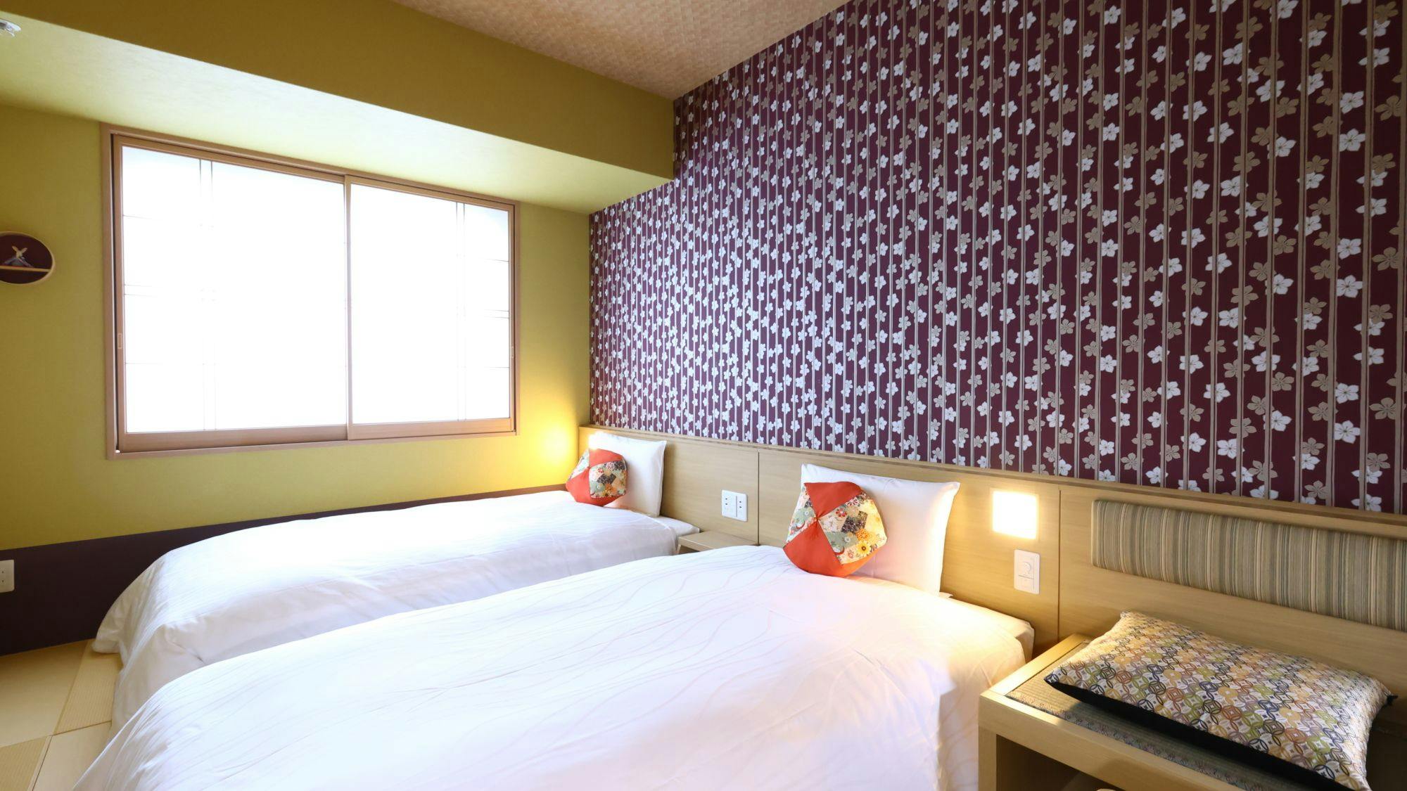 ■全室禁煙、畳敷き■サータ社製ベッド(140×195センチ)■広さ15.9平米■全室Wi-Fi利用可能