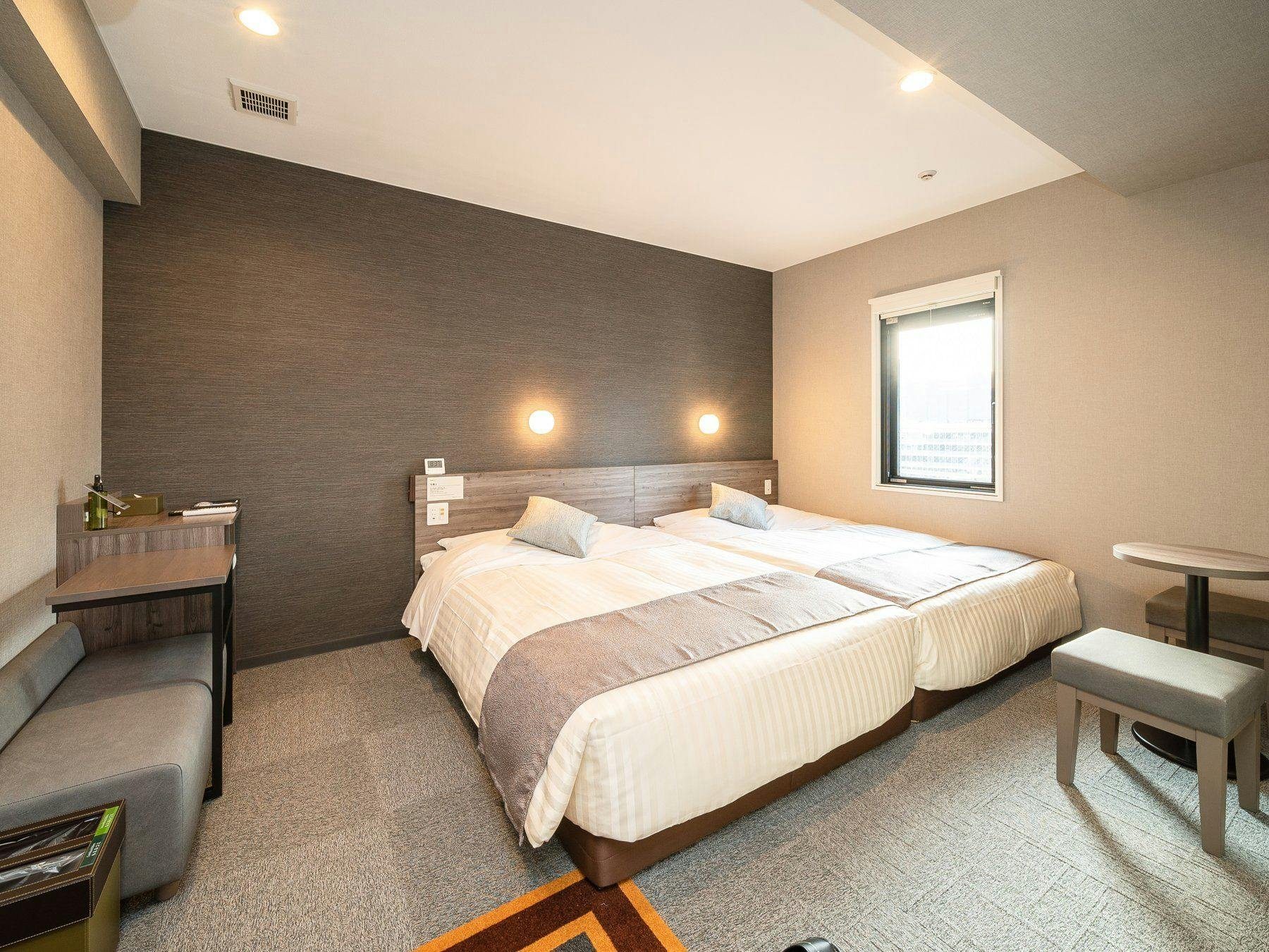 セミダブルベッドとソファベッドのある【エキストラツインルーム】でございます。