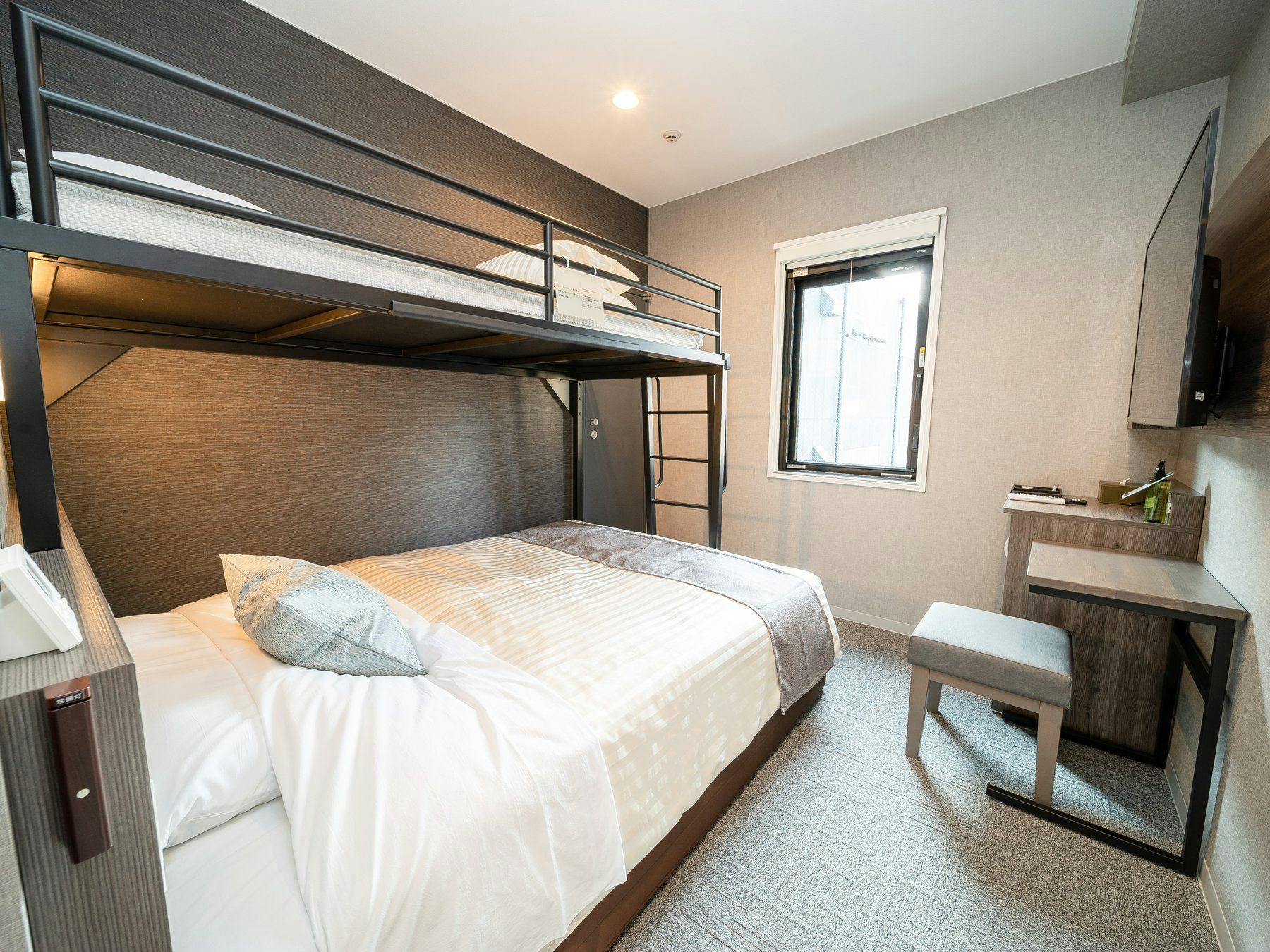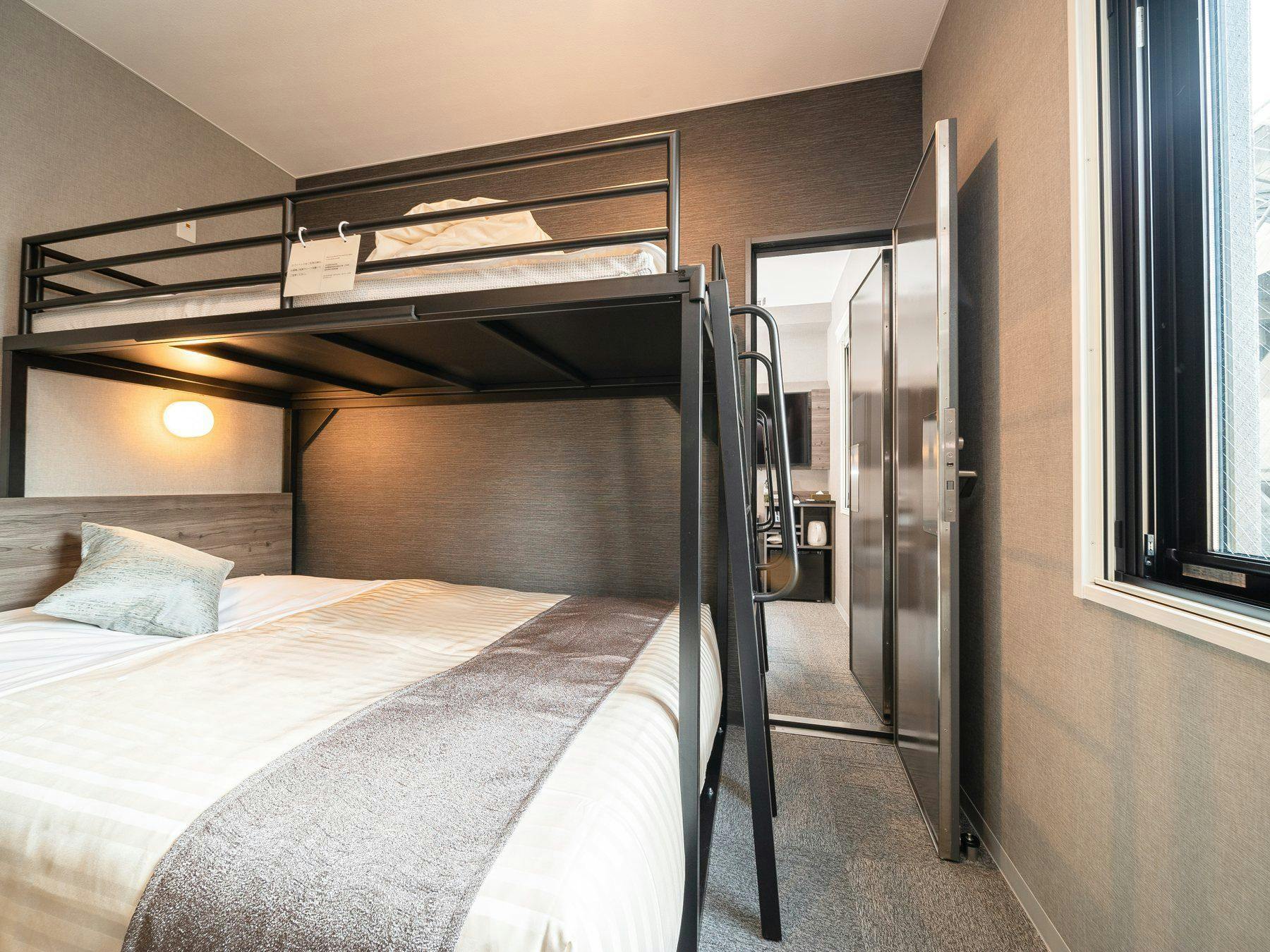 ダブルサイズのワイドベッドとお子様に人気のロフトベッド付のスーパールームが2部屋繋がった【スーパールームコネクティング】です。