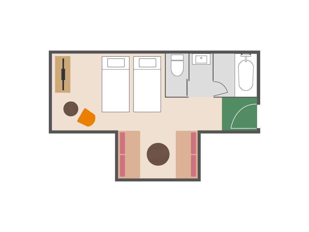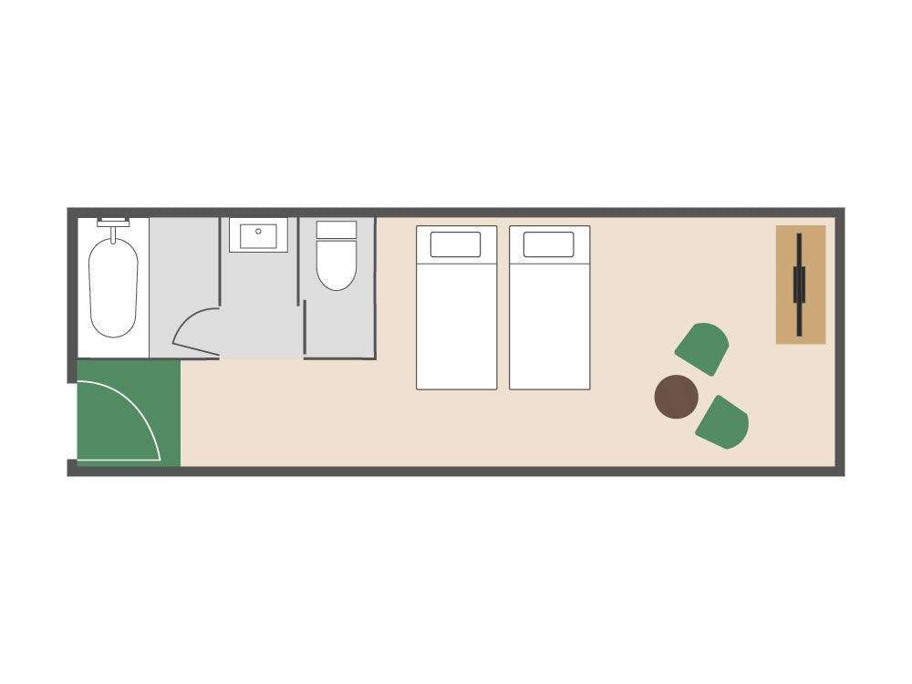 ・広さ24平米・110cm幅ベッド×2台・独立式バス・トイレ・Wi-Fi接続無料・加湿機能付き空気清浄機