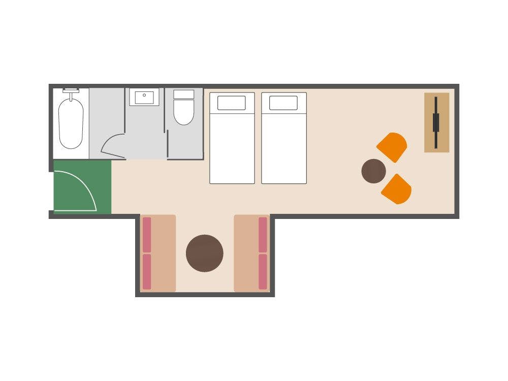 ・広さ29平米・110cm幅ベッド×2台・独立式バス・トイレ・Wi-Fi接続無料・加湿機能付き空気清浄機