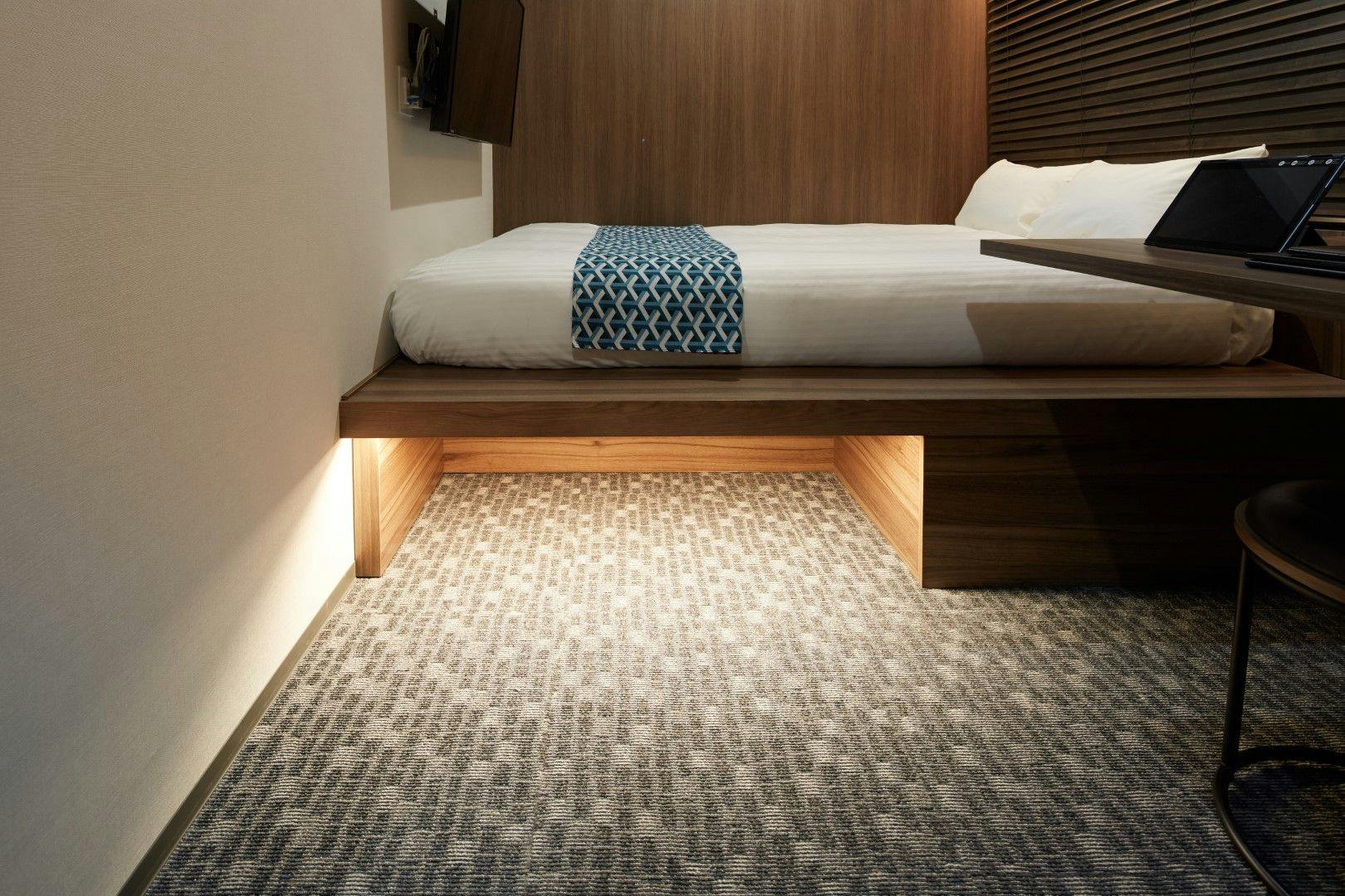 お部屋の広さは12平米です。140センチのシモンズ製ベッドでごゆっくりお過ごしくださいませ。小上がりの上なのでとても落ち着きます。