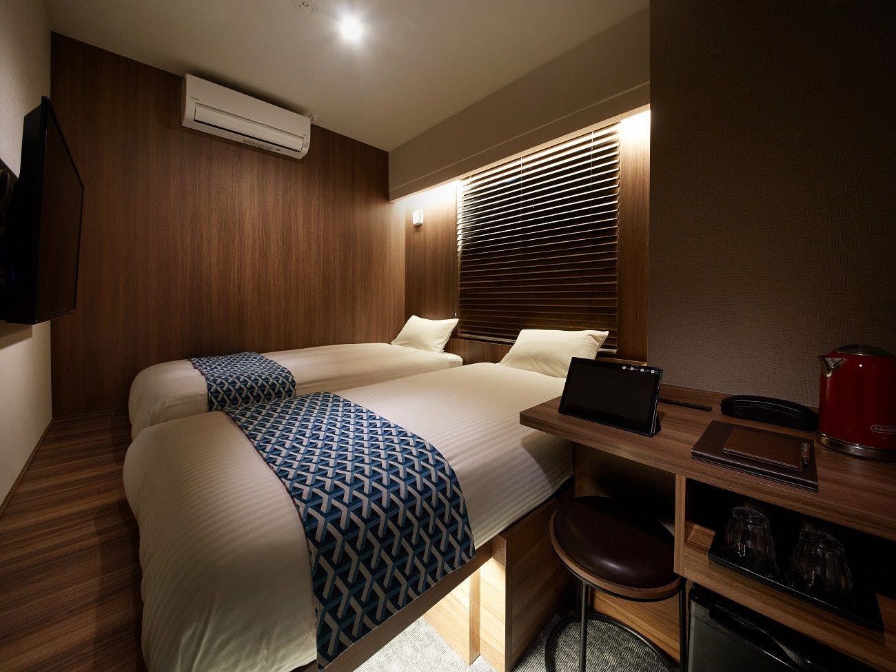 お部屋の広さは13平米です。シングルのベッドを二つご用意しております。ベッドは分かれておりますが、小上がりの上なのでお連れ様ともゆったりお過ごしいただけます。