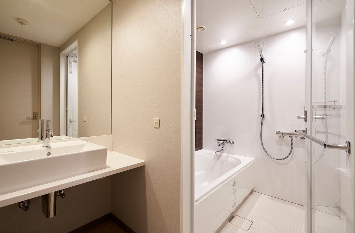 最大4名様まで対応可最上階(11階・街側)バス・トイレ別々65型スマートTV電子レンジ冷蔵庫(90L)ドラム式洗濯機 ※乾燥機能なし洋服スタイナー※家具や備品のレイアウトは客室により異なる場合がございます。