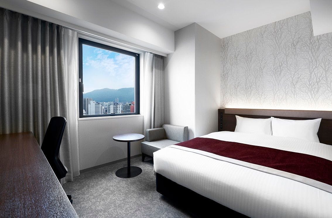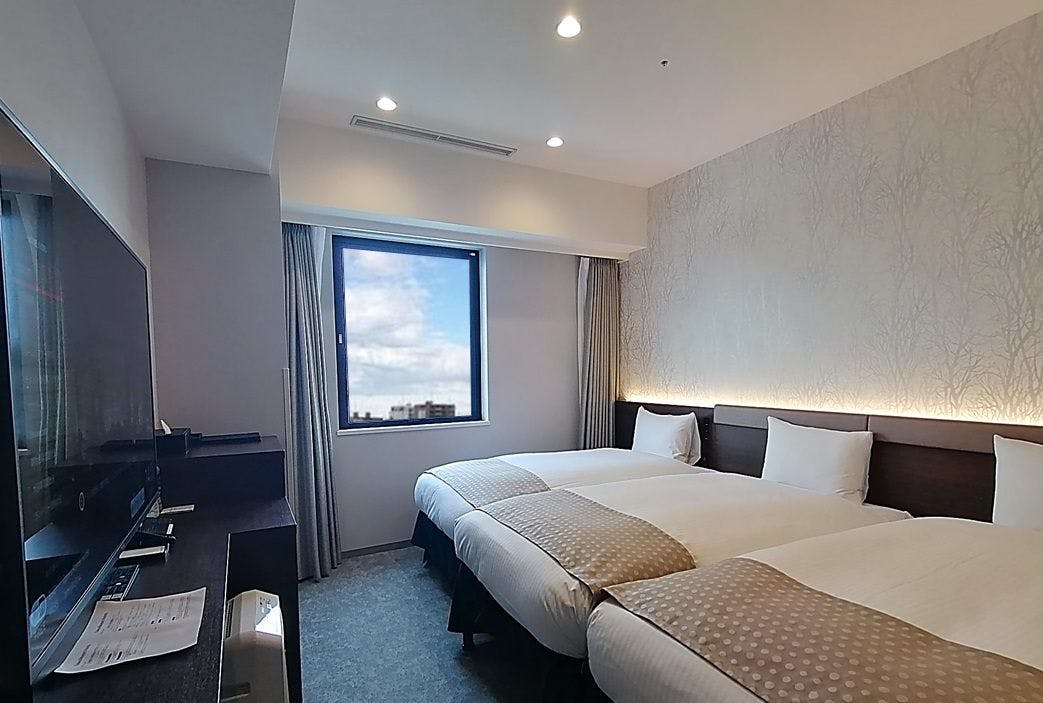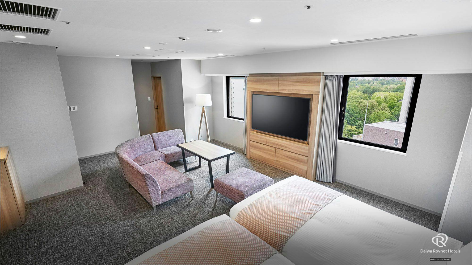 最大4名様まで対応可最上階(11階・街側)バス・トイレ別々65型スマートTV電子レンジ冷蔵庫(90L)※家具や備品のレイアウトは客室により異なる場合がございます。
