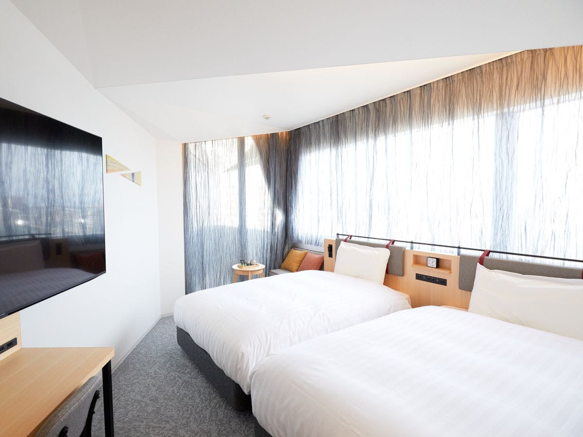 朝日を効率よく取り込めるよう、部屋の向きを調整、特徴的なカーテンが設置された特別な客室です。