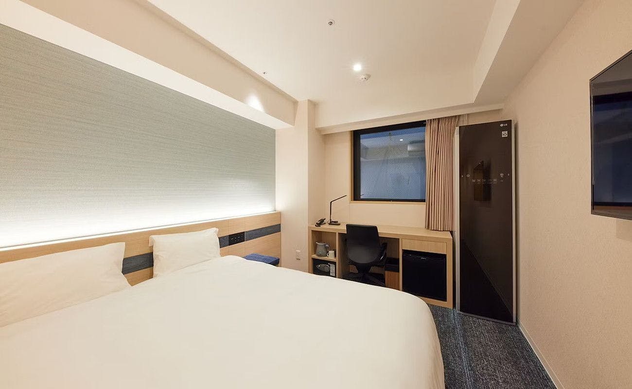 全室LGスタイラー設置。ベッドサイズ140cmのユニットバスタイプのお部屋です。無料Wi-Fi利用可能。