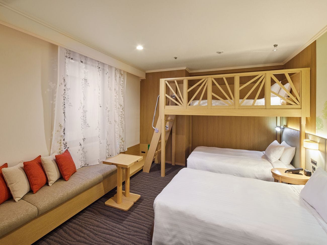 【ダブルデッキルーム】■禁煙■トイレ・3点式ユニットバス■31.1平米■ベッドサイズ:110cm×200cm※2段ベッド1台含め、ベッドが計3台あるお部屋です■WIFI無料