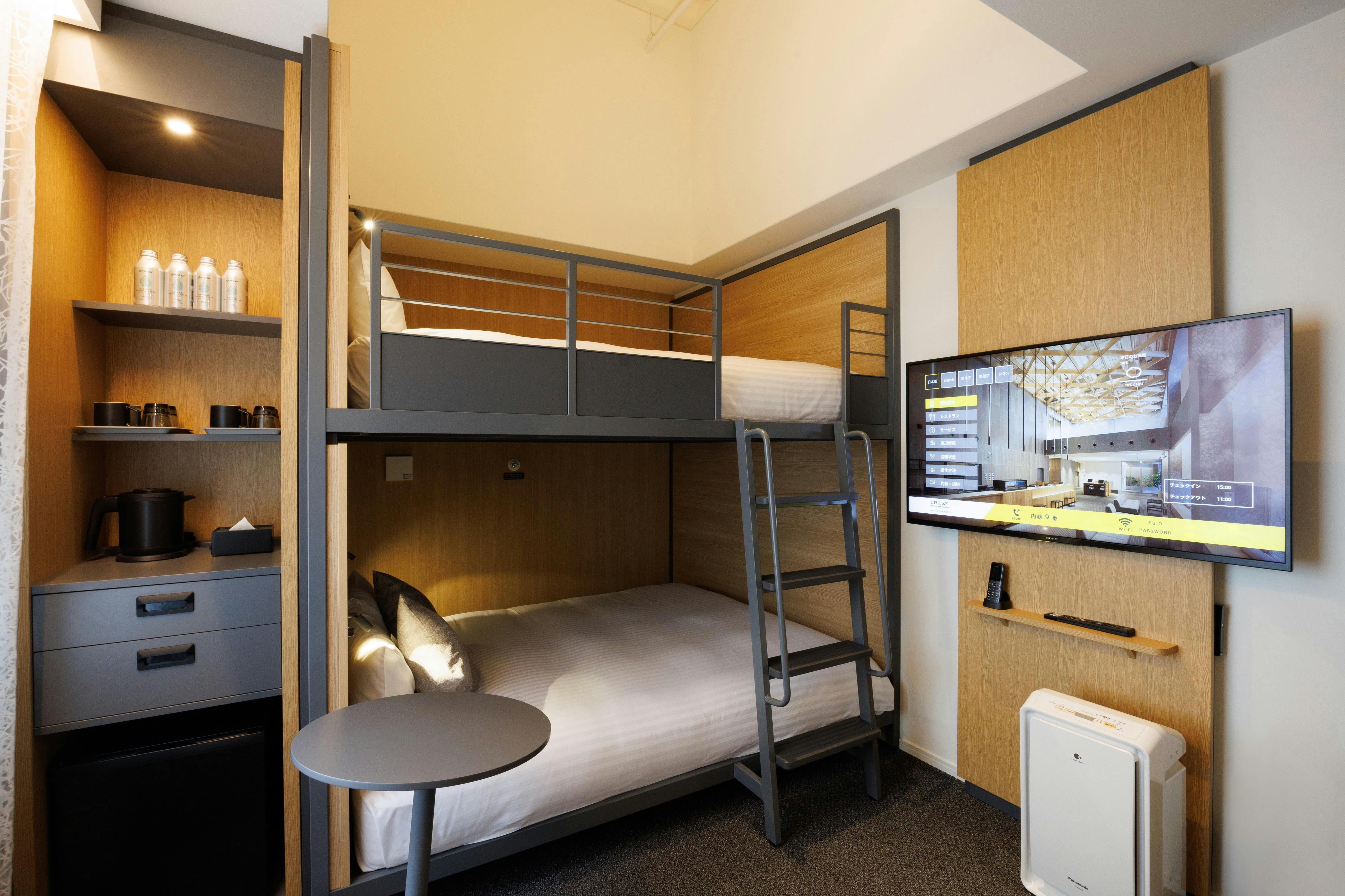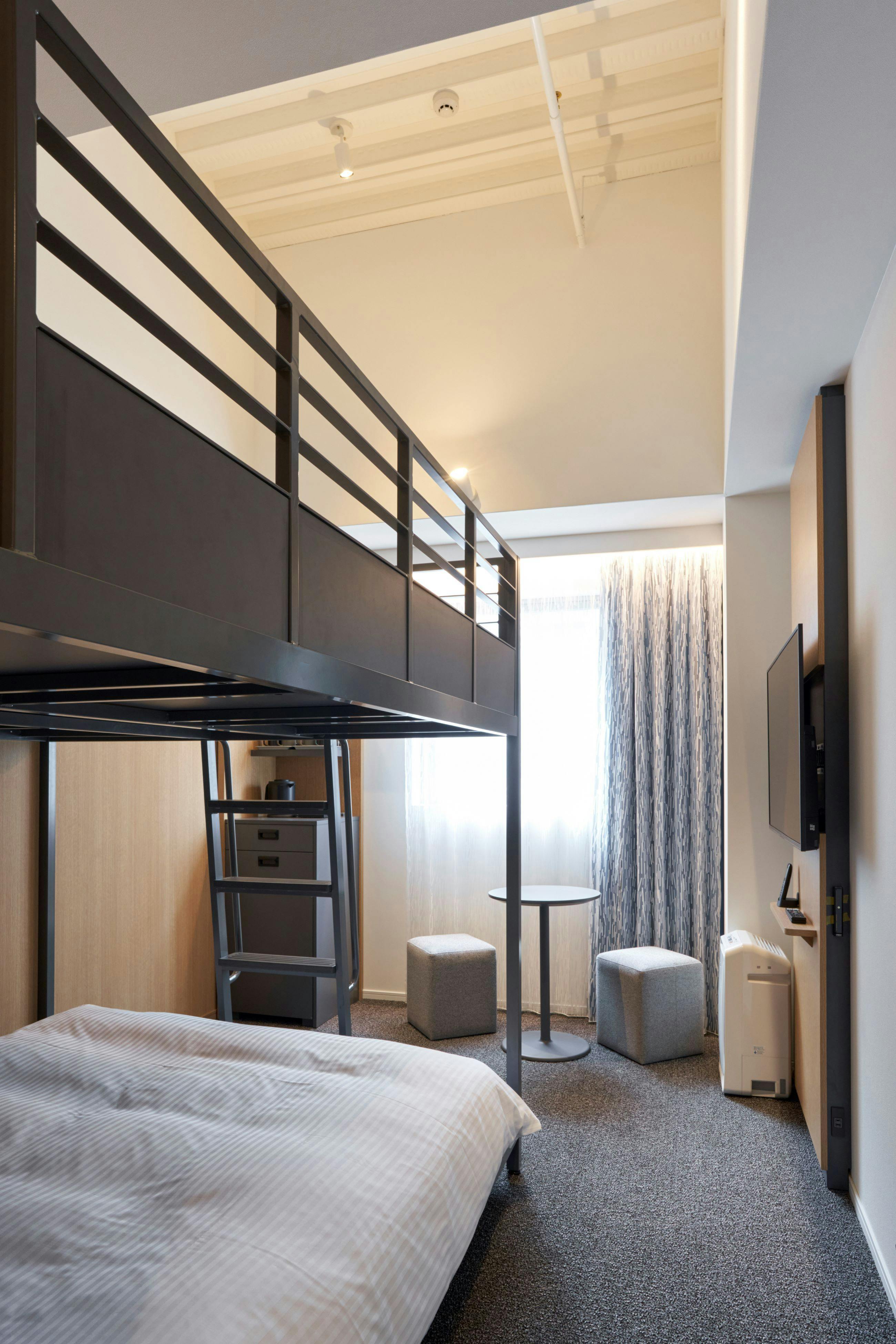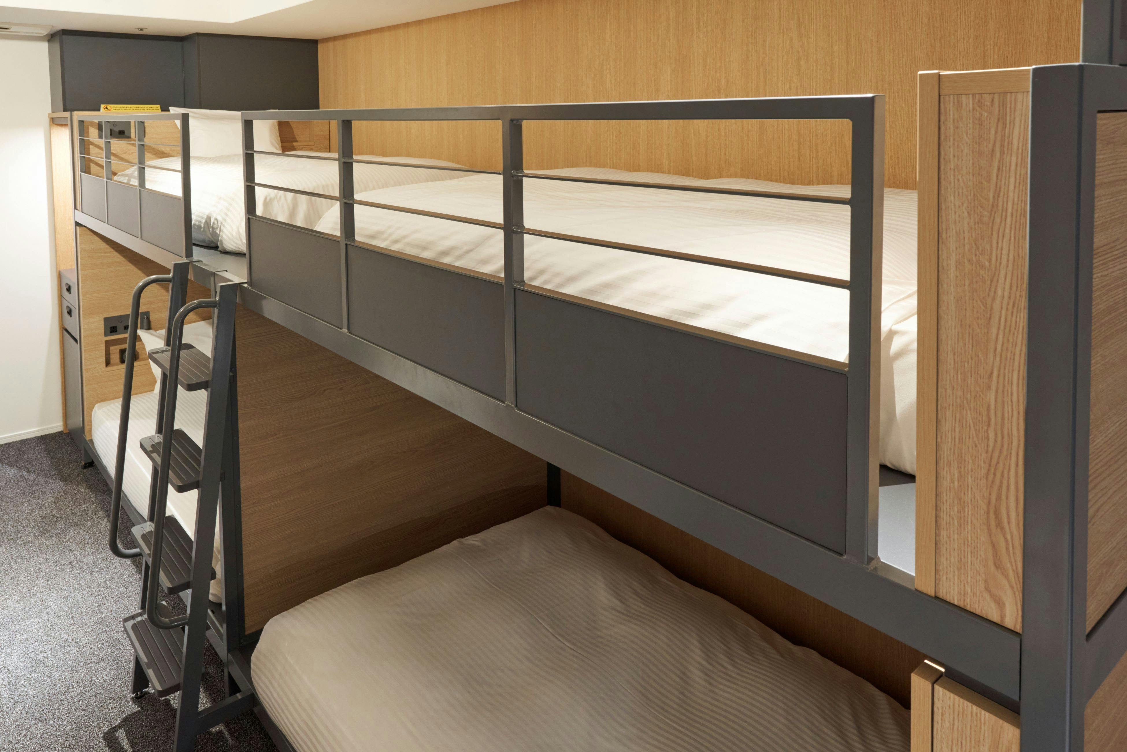 ダブルベッド(140cm幅)の二段ベッドが備わる、最大4名の宿泊が可能な客室。
