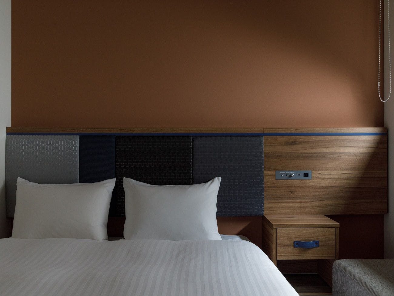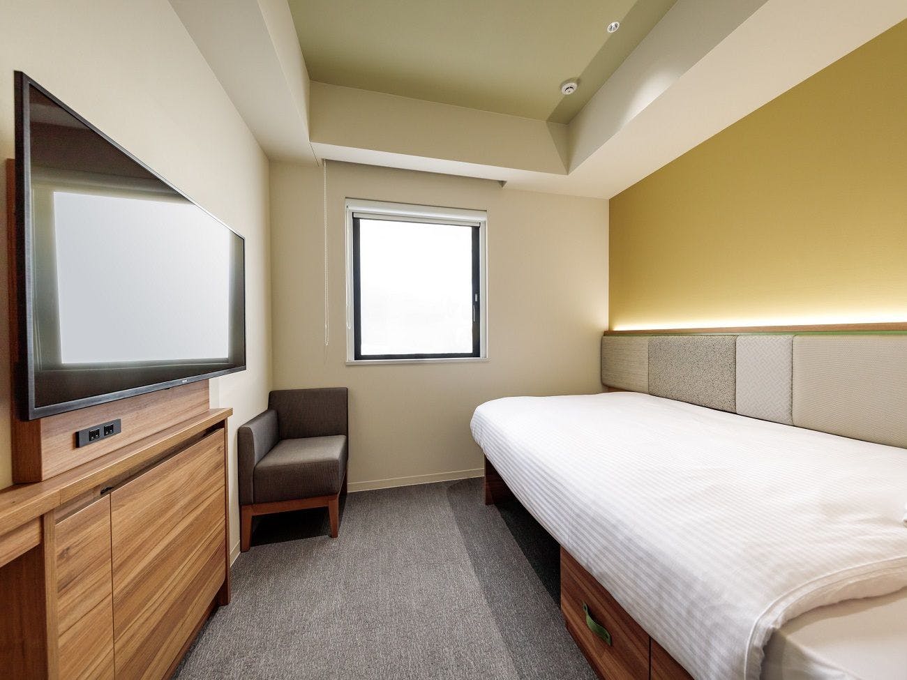 広さ:15.9平米・ベッドサイズ:幅150cm×長さ195cm×高さ47cm・水回り:トイレ+洗面スペース・浴槽無し(シャワーブース)