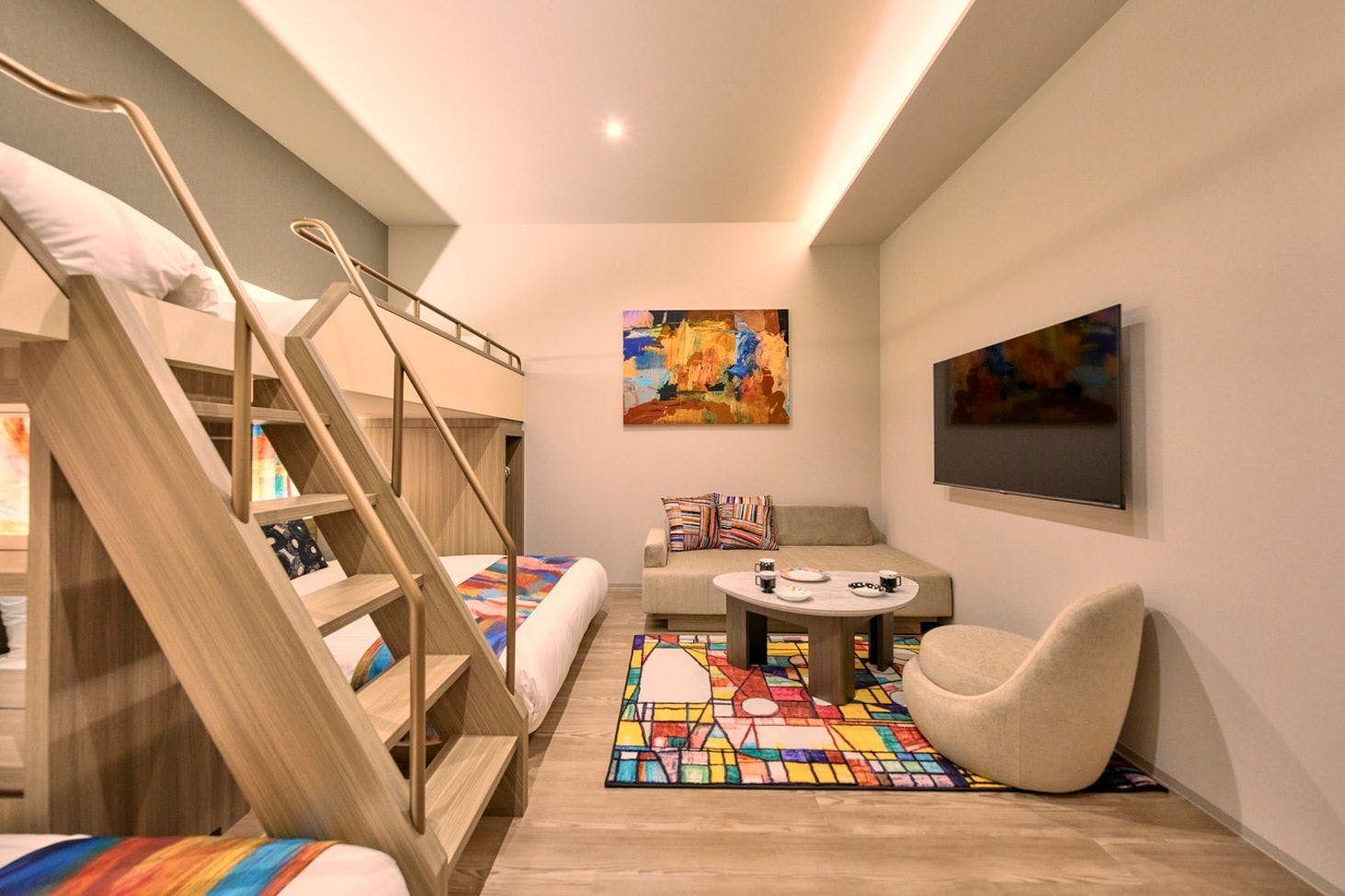 ■禁煙■SIMONS製マットレス使用■2段ベッド(下段クイーンベッド2台・上段シングルベッド2台)■ヘラルボニーとのコラボコンセプトルーム