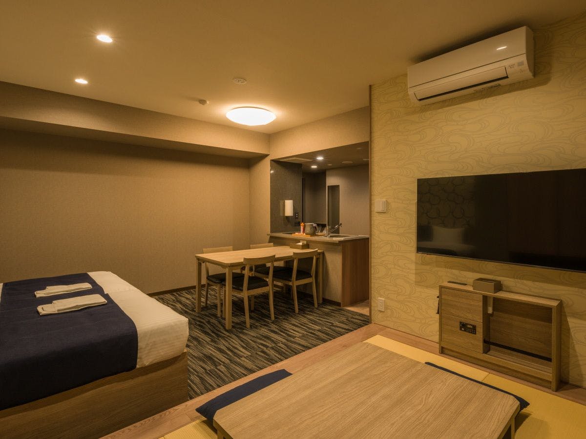 ゆっくりくつろげる畳スペースを設けたお部屋。ソファーベッド、布団をご利用いただくことで、最大5名様までご宿泊いただけます。ご家族・ご友人同士でのグループ旅行に最適です。