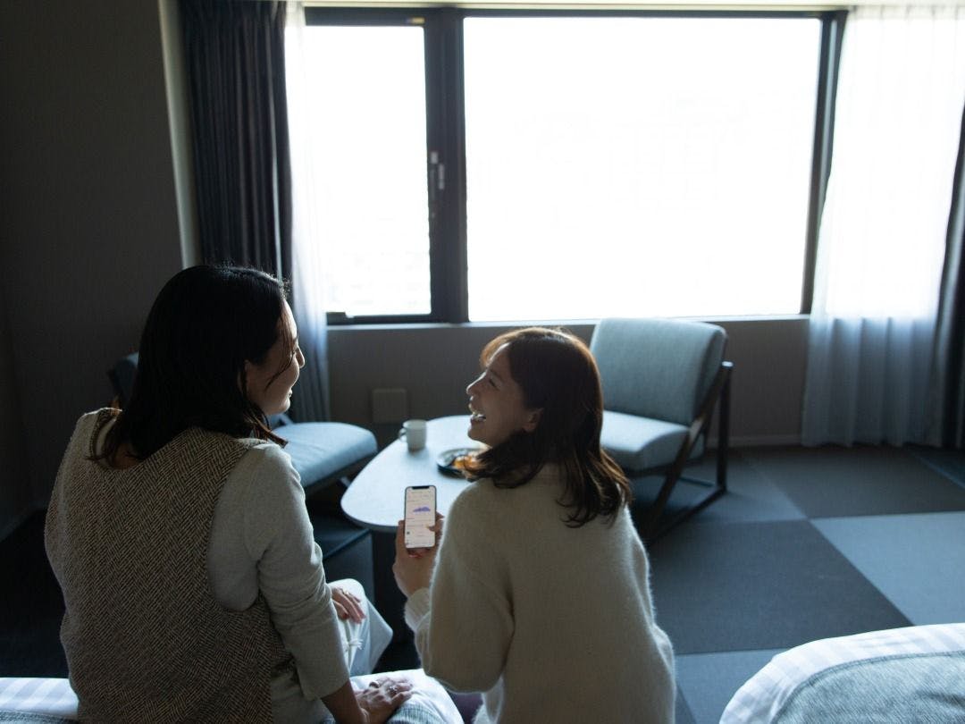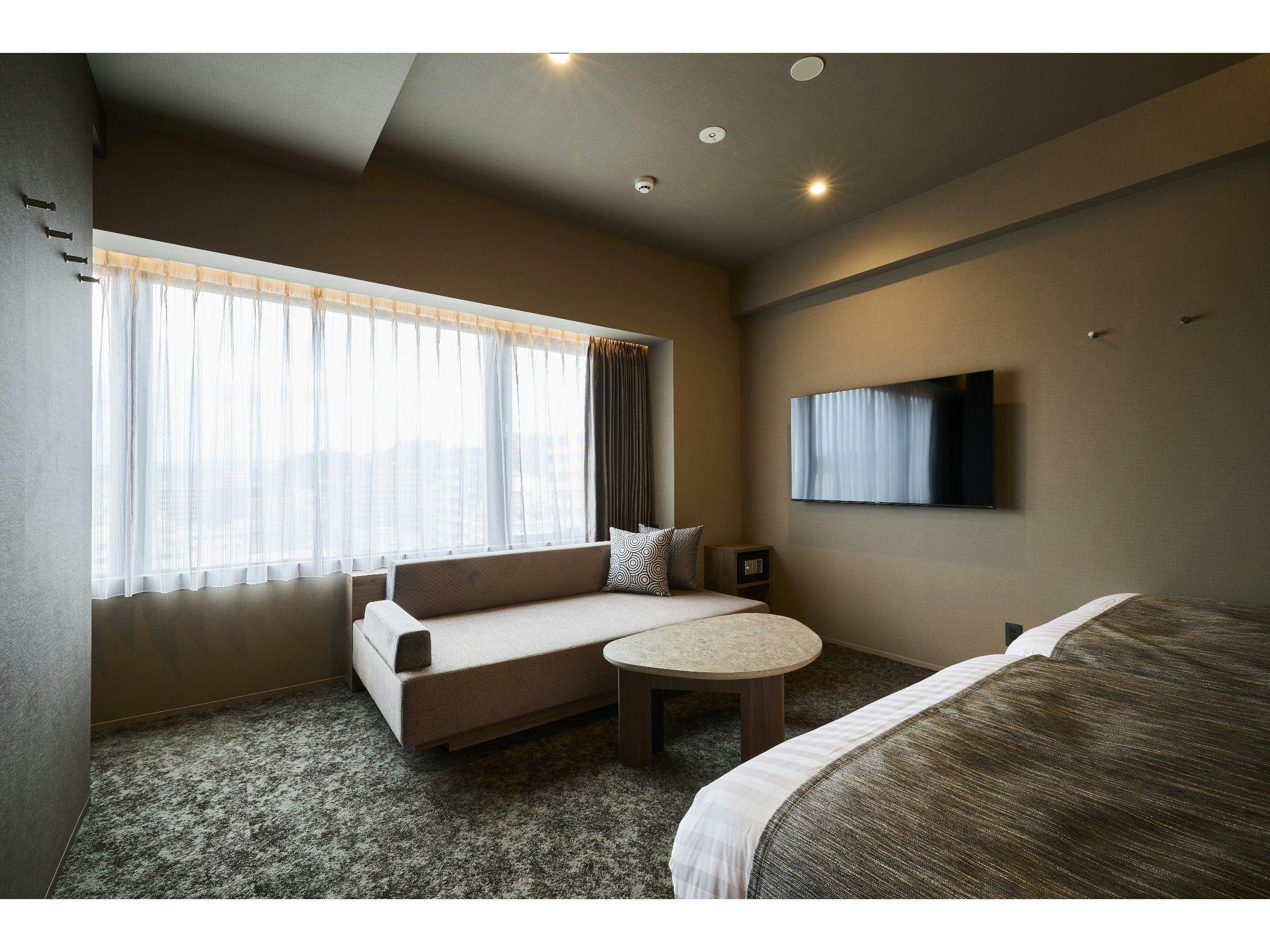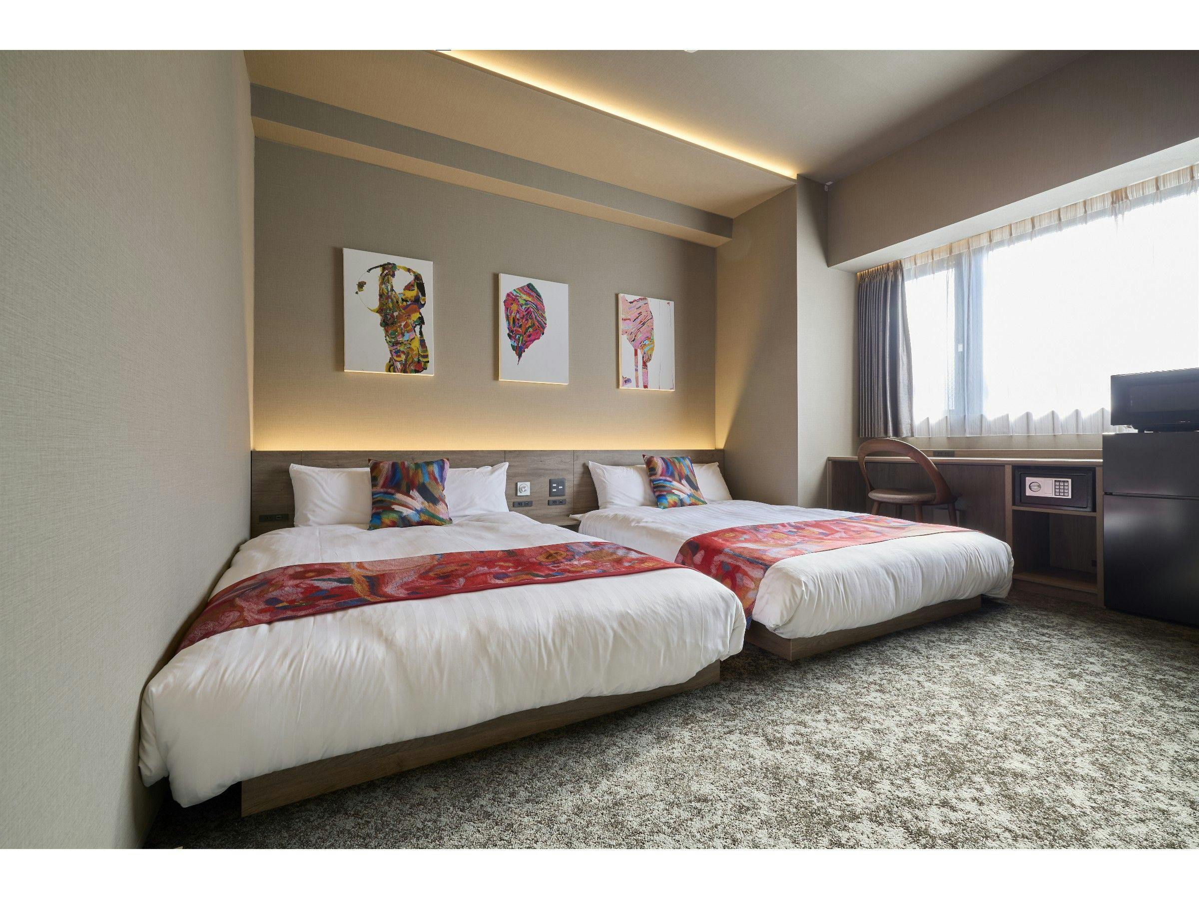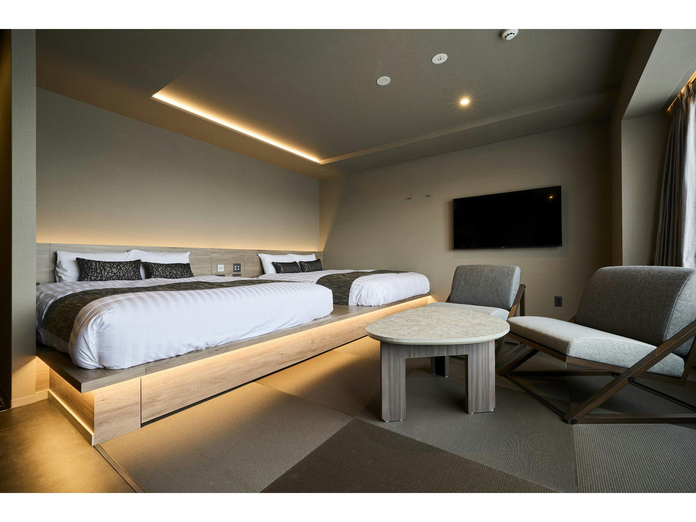 【ユニバーサルルームwithヘラルボニー】シモンズ製マットレス使用!ダブルベッド2台シャワールーム(トイレ別)ダイニングテーブル/椅子車椅子対応の客室キッチン洗濯機