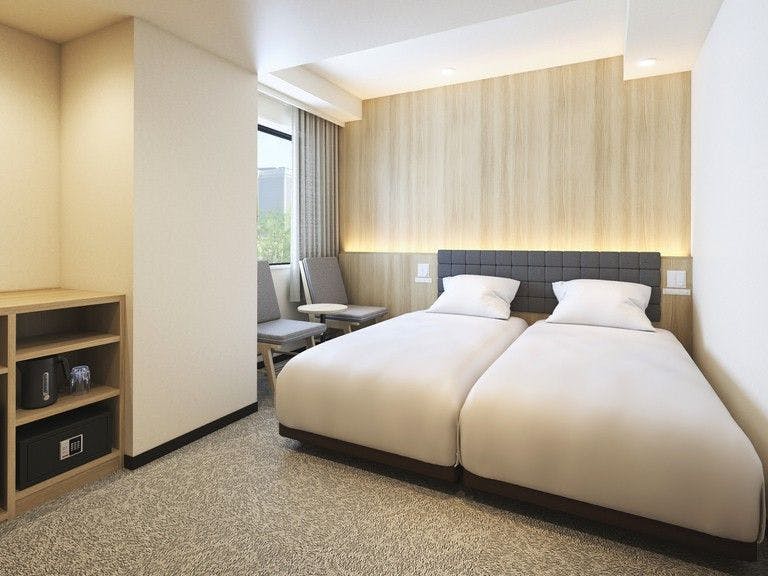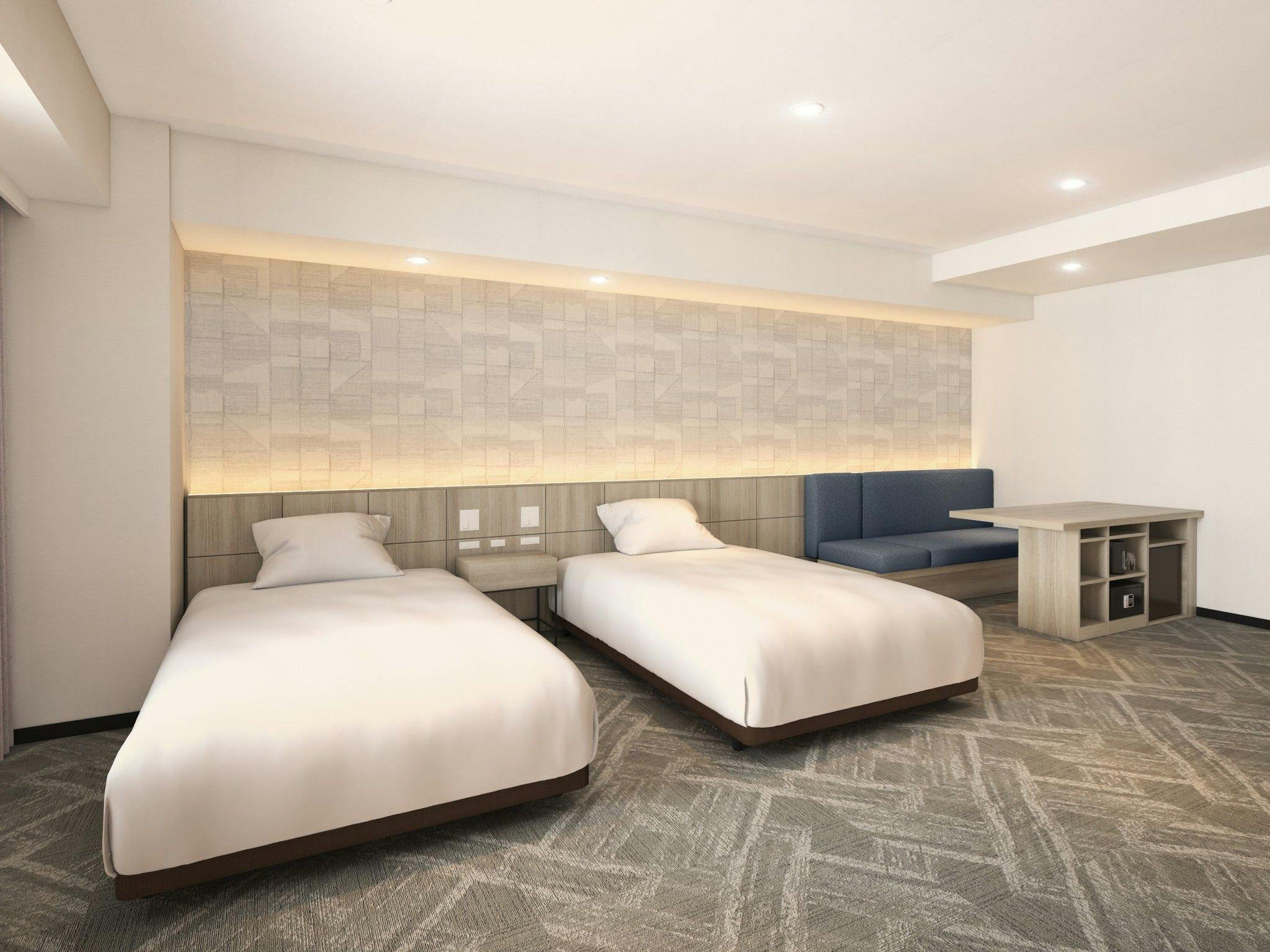 【全室禁煙】ベッド2台を間なく並べたハリウッドツインタイプです。お子様のいらっしゃるお客様にもおすすめです(小学6年生までは無料で添い寝頂けます)。バスルームはセパレートタイプでご自宅のようにご利用頂けます。