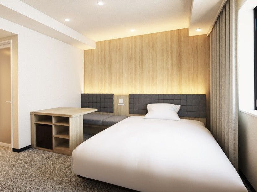 【全室禁煙】ヴィアインシングルと同じく、アイランドテーブルとベンチソファにより、くつろぎやすい部屋を実現しました。ベッドはクイーンサイズ(160cm幅)で、カップルなどお二人様でのご利用はもちろん、お一人様でゆったりとご利用いただくのもおすすめです。