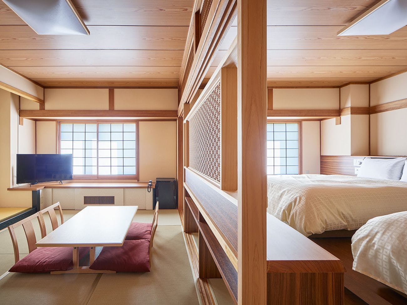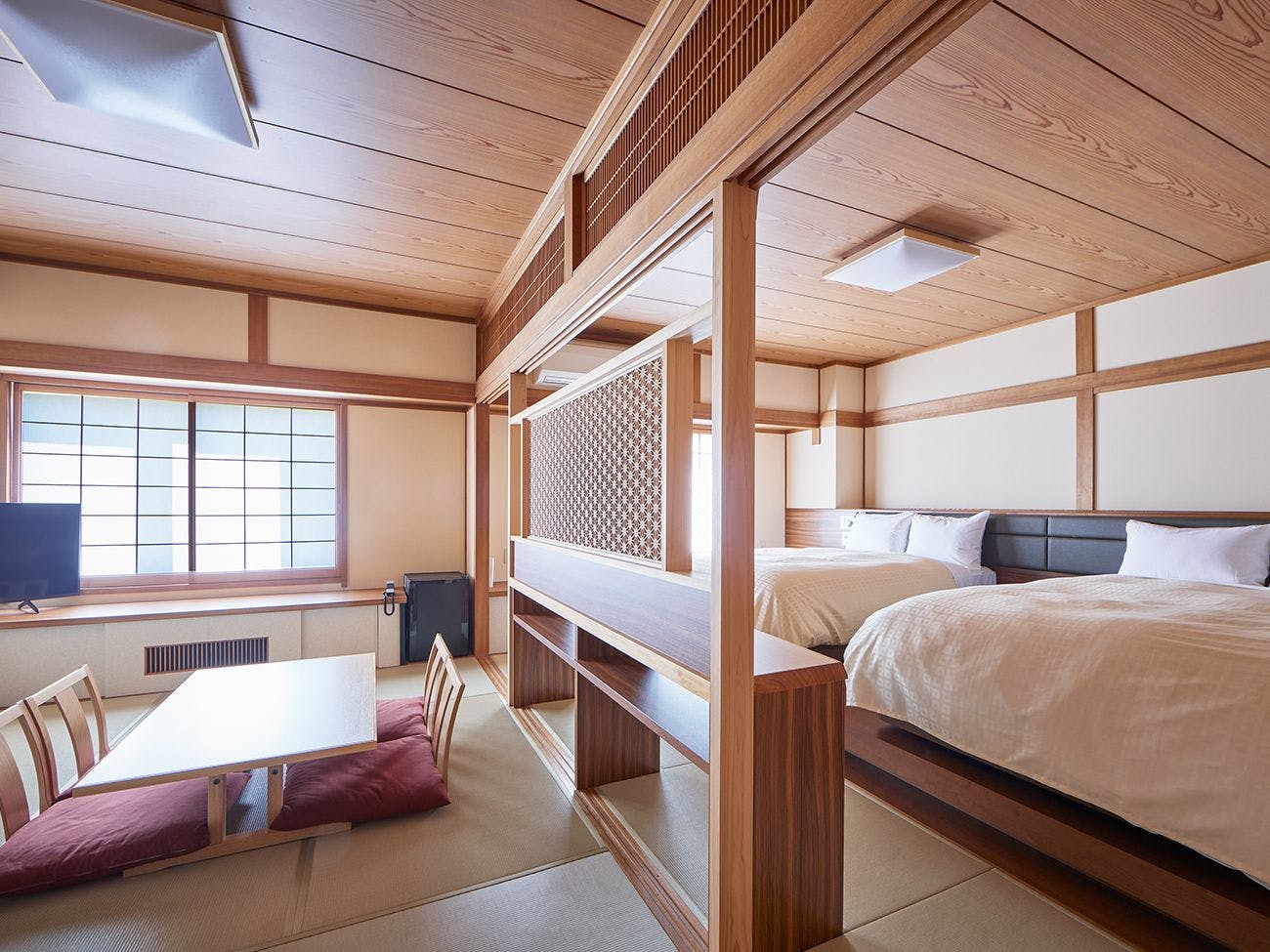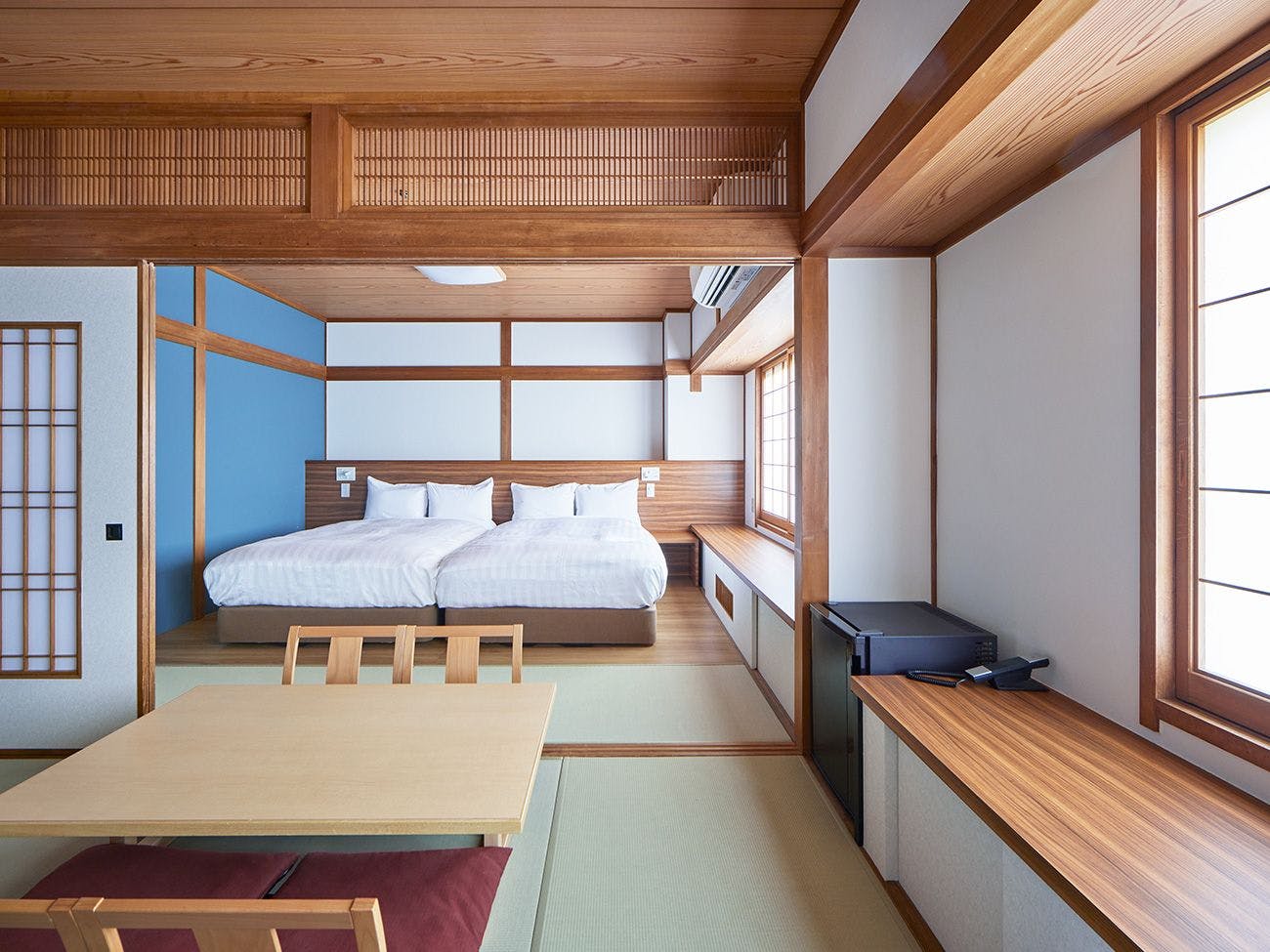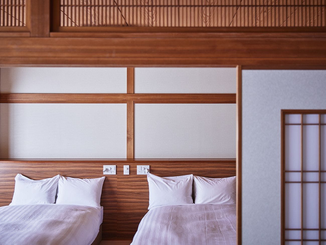 ■お部屋の広さ…46m2■ベッドサイズ…120×200×2台■備品…空気清浄機・電気ケトル・ドライヤー・空の冷蔵庫・シャワートイレ■2名様まではベッドですが3名様からご利用の場合はお布団でのご用意となります。